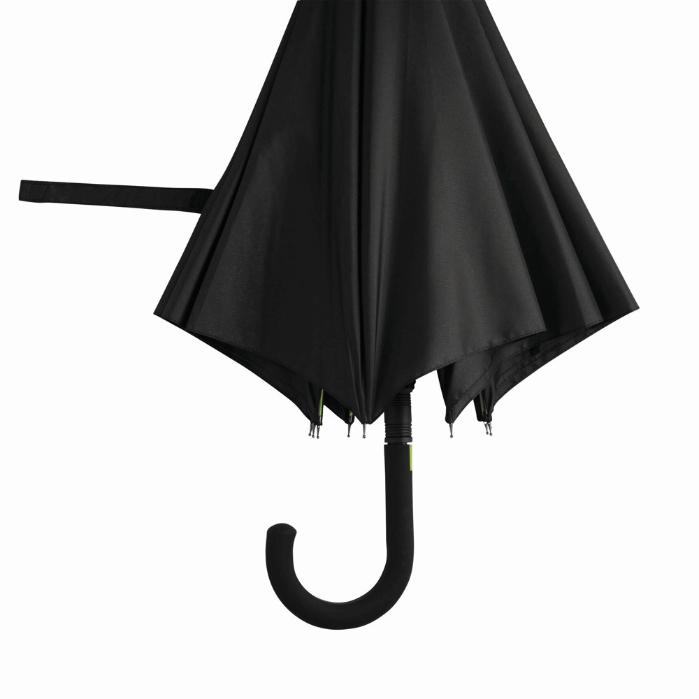 Automatic stick umbrella CANCAN: metal shaft and colour-coordinated fibreglass ribs, with metal tips, rubberised crook handle with automatic release button in matching colour, polyester pongee canopy, closing strap with touch fastener