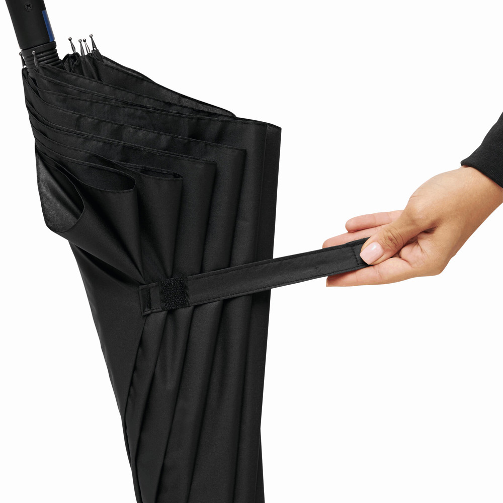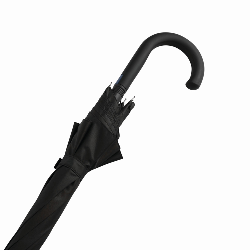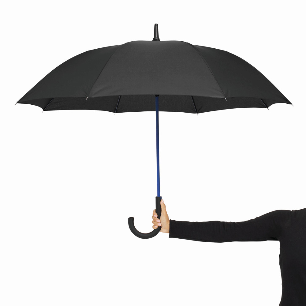 Automatic stick umbrella CANCAN: metal shaft and colour-coordinated fibreglass ribs, with metal tips, rubberised crook handle with automatic release button in matching colour, polyester pongee canopy, closing strap with touch fastener