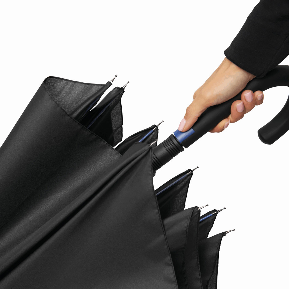 Automatic stick umbrella CANCAN: metal shaft and colour-coordinated fibreglass ribs, with metal... more