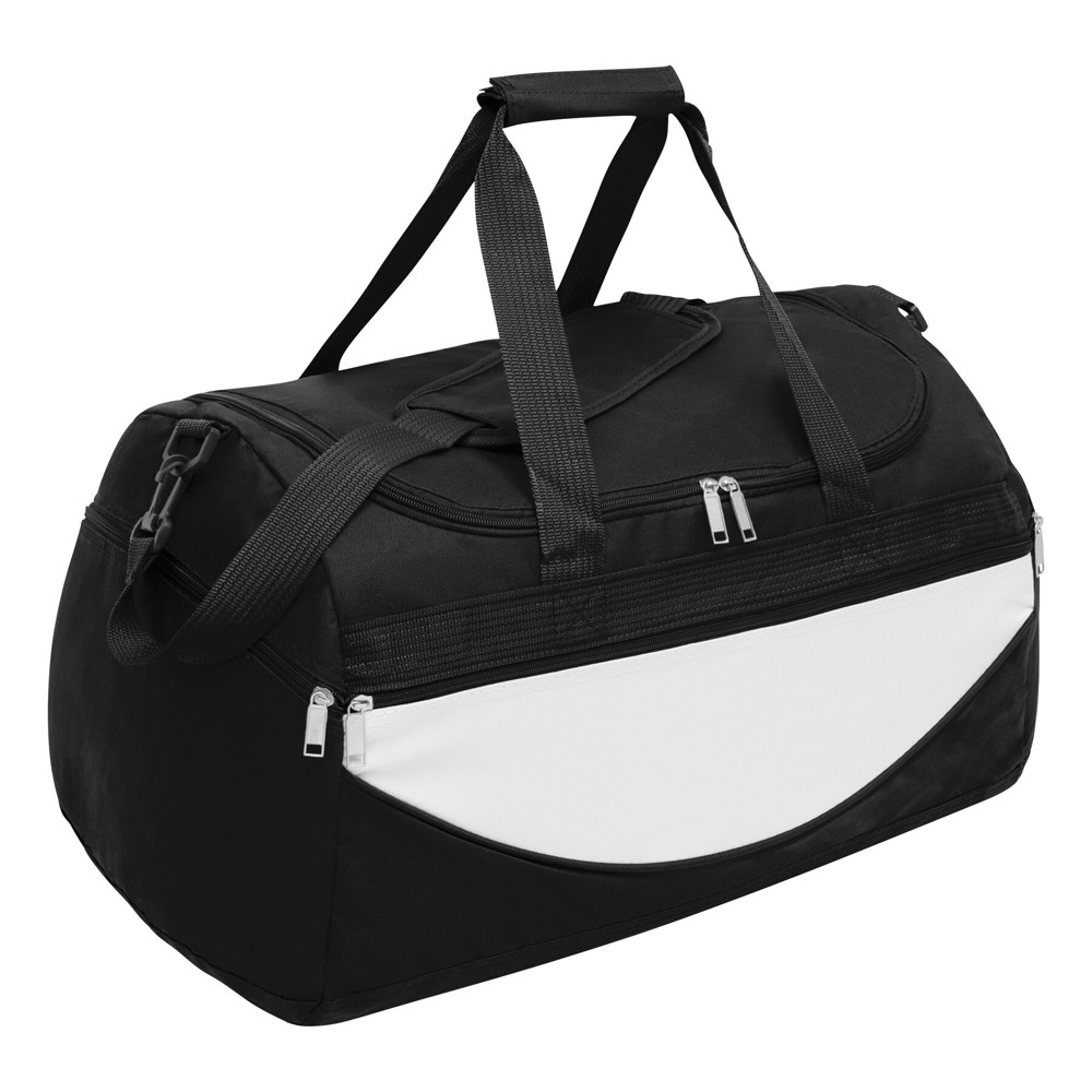 Sports bag CHAMP: with zipped main pocket, white front pocket with zip, side pockets with zip, strong carrying handles and an adjustable and removable shoulder strap with shoulder pad