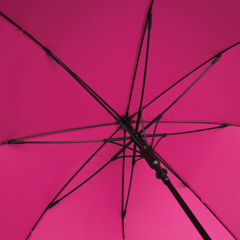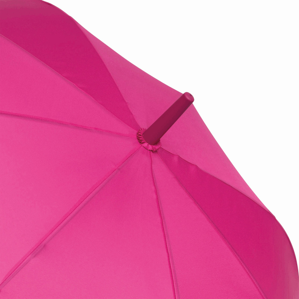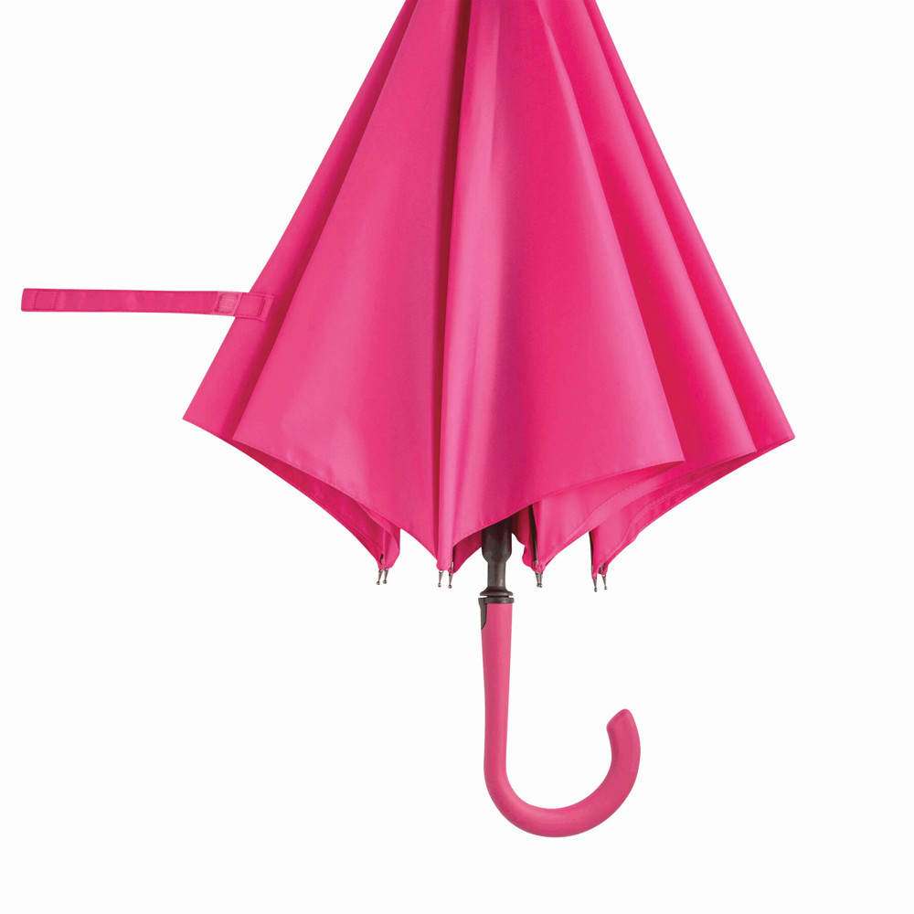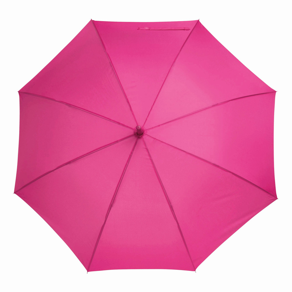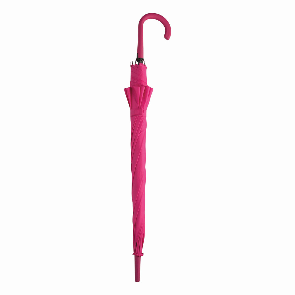 Automatic umbrella LAMBARDA: with metal shaft, fibreglass ribs, metal tips, rubber-coated crook handle with integrated press button, polyester pongee canopy with special water-resistant coating, closing strap with touch fastener