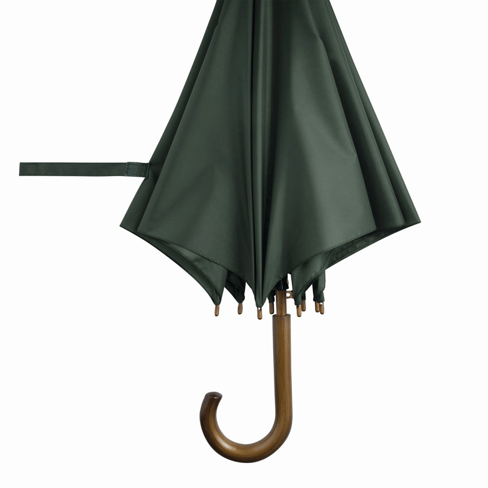 Automatic wooden stick umbrella BOOGIE: metal ribs, wooden tips, wooden crook handle, nylon canopy, closing strap with touch fastener