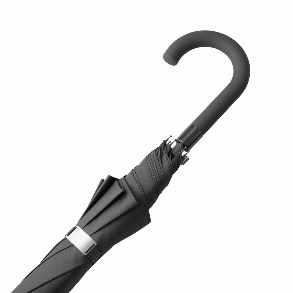 Automatic windproof stick umbrella JUBILEE: aluminium shaft, fibreglass ribs, metal tips, rubber-coated crook handle in matching colour, polyester canopy and sheath with honeycomb structure, with snap fastener and metal plate for advertisement