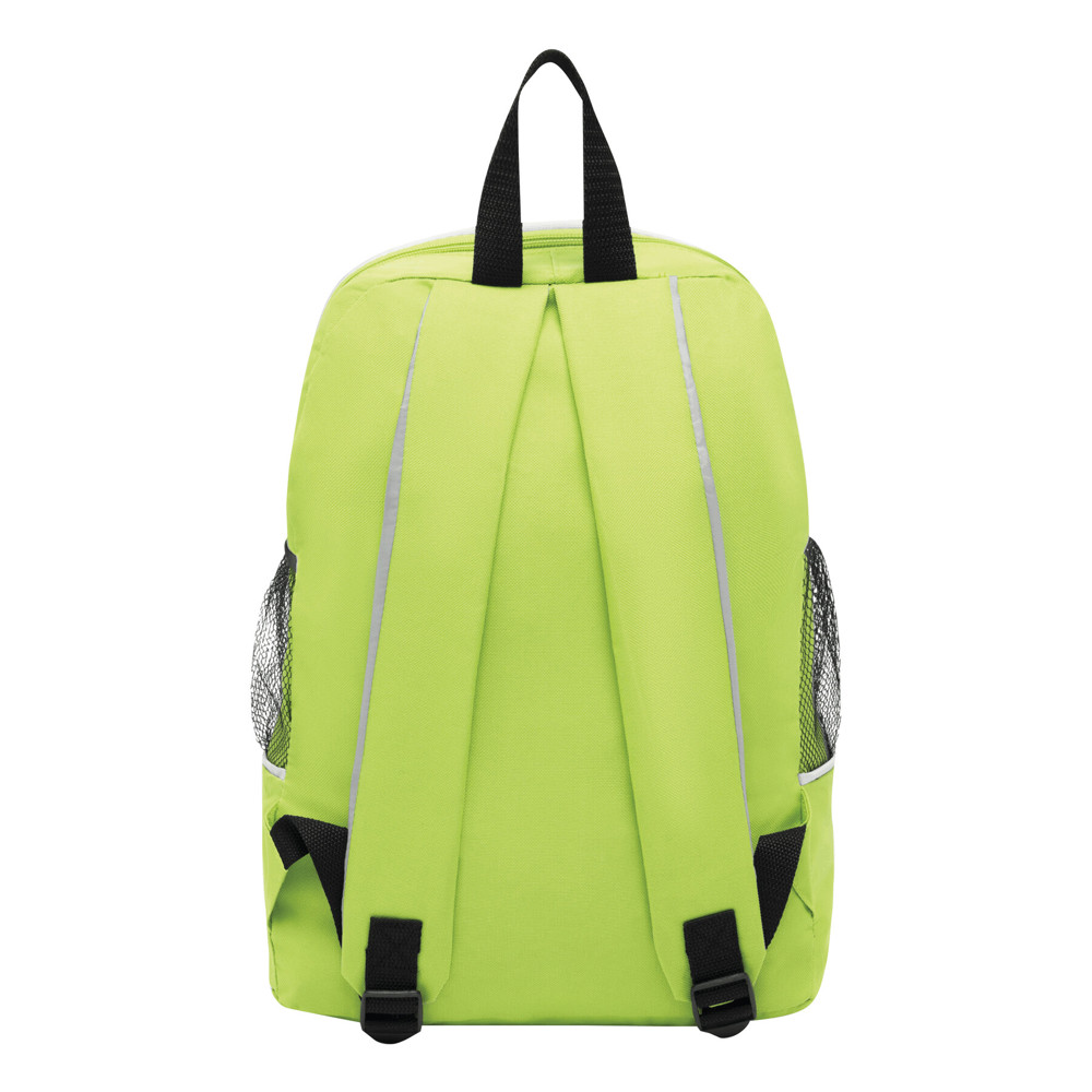 Backpack TEC: front pocket with zip and earphone hole, zippered main compartment, carrying strap, 2 mesh pockets on the side, padded shoulder straps