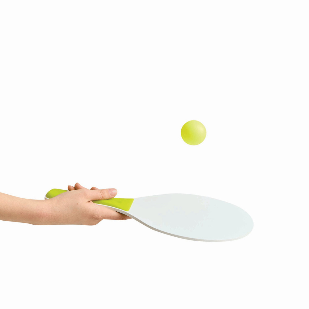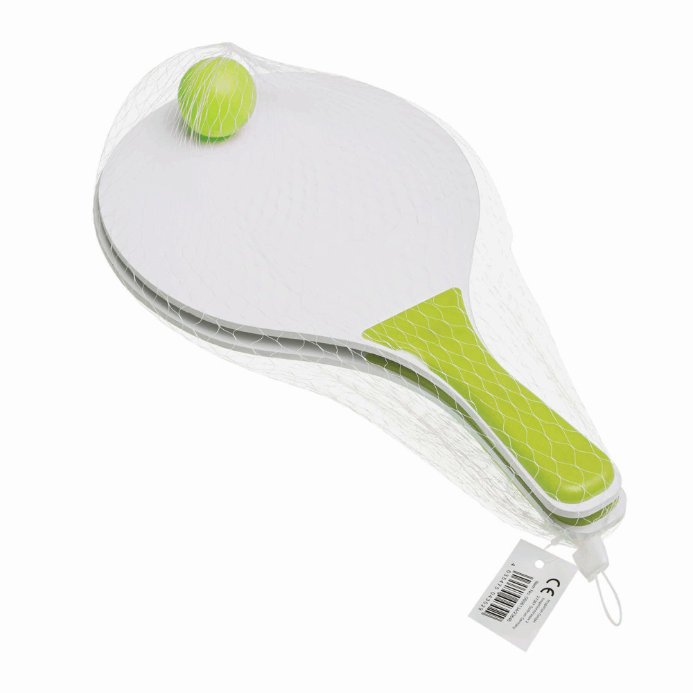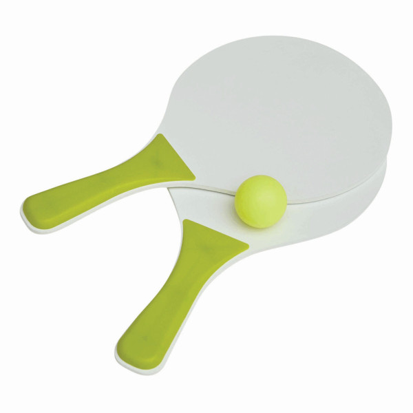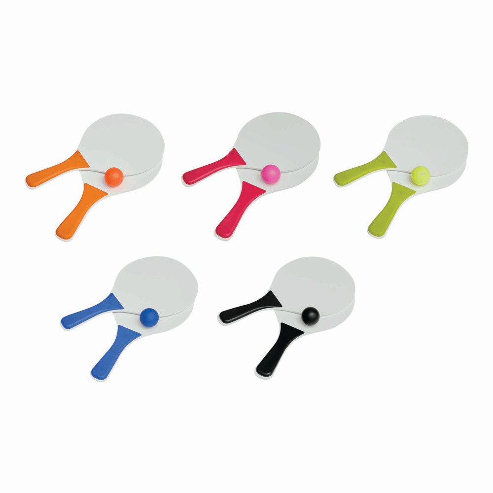 Beach ball set SUMMER FEELING with 2 wooden bats with coloured handles, 1 softball, packed in a... more