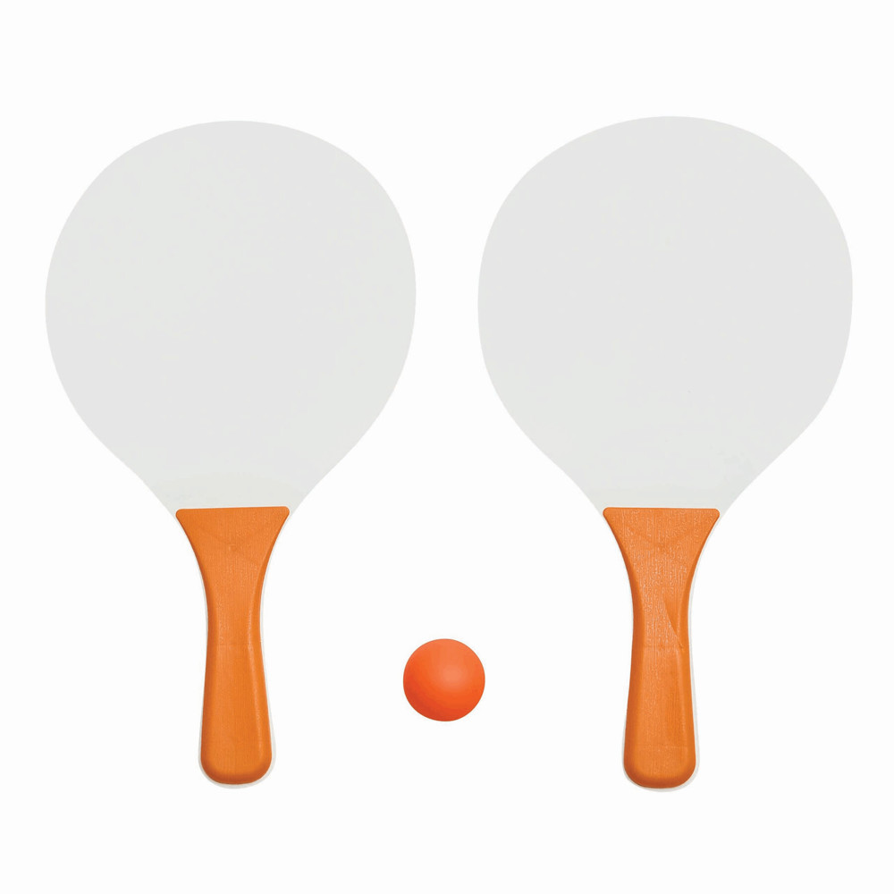 Beach ball set SUMMER FEELING with 2 wooden bats with coloured handles, 1 softball, packed in a... more