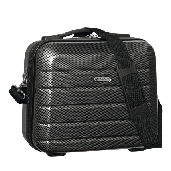 Cosmetic case LONDON 2.0: exclusive equipment and design, packing on both sides, main pocket with flexible divider incl. mirror, various flexible loops and pockets with elastic bands, detachable inner pocket with zip, detachable and adjustable shoulder strap, can be attached to trolley system, incl. combination lock