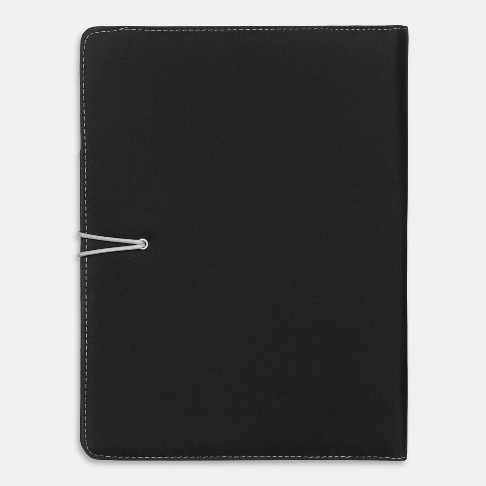 Portfolio SESSION in DIN A4 format, includes writing pad, loop for writing utensil, various slip-in pockets, metal hook with coloured elastic band for closing
