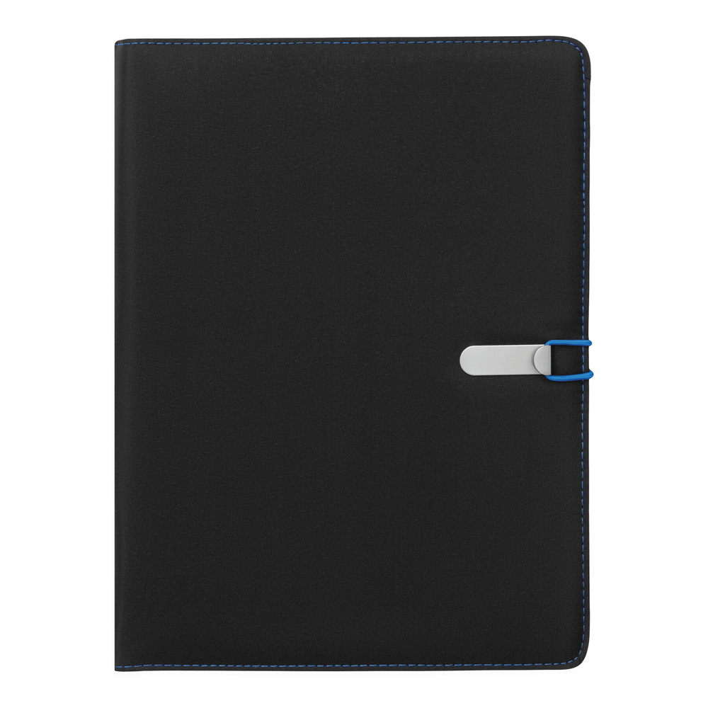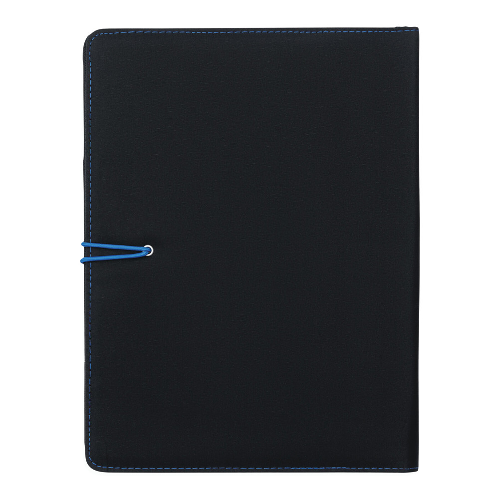 Portfolio SESSION in DIN A4 format, includes writing pad, loop for writing utensil, various slip-in pockets, metal hook with coloured elastic band for closing