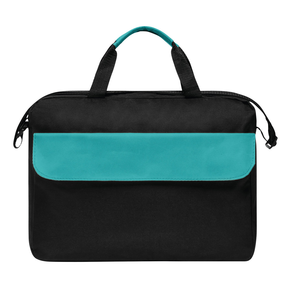 Document bag BRISTOL: Velcro front pocket with coloured cover, spacious main zip compartment, 2 reinforced and differently coloured carrying handles, adjustable shoulder strap