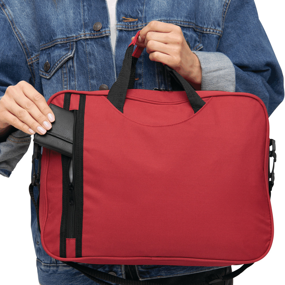 Document bag BUSY: vertically zippered front pocket, slip-in pocket on the front, zippered main compartment, strong carrying handle, adjustable and removable shoulder strap