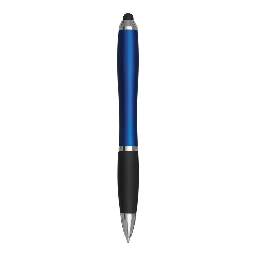 Ballpoint pen SWAY TOUCH with waisted shank form, twist mechanism, rubber-coated grip area and touchscreen point at the end, blue ink