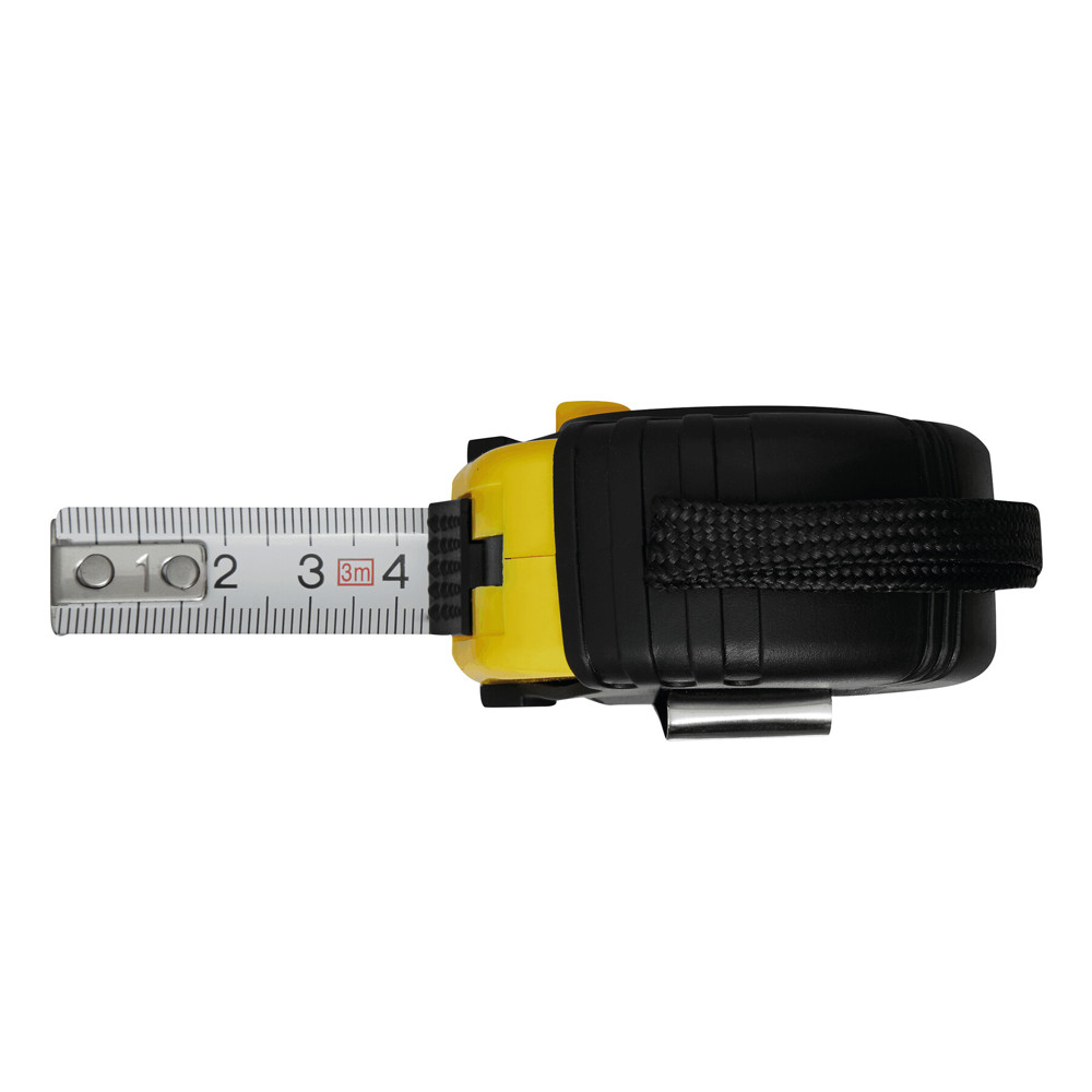 Measuring tape WORKMAN with clip and carrying loop in rubber body with an automatic stopper, 3 m more
