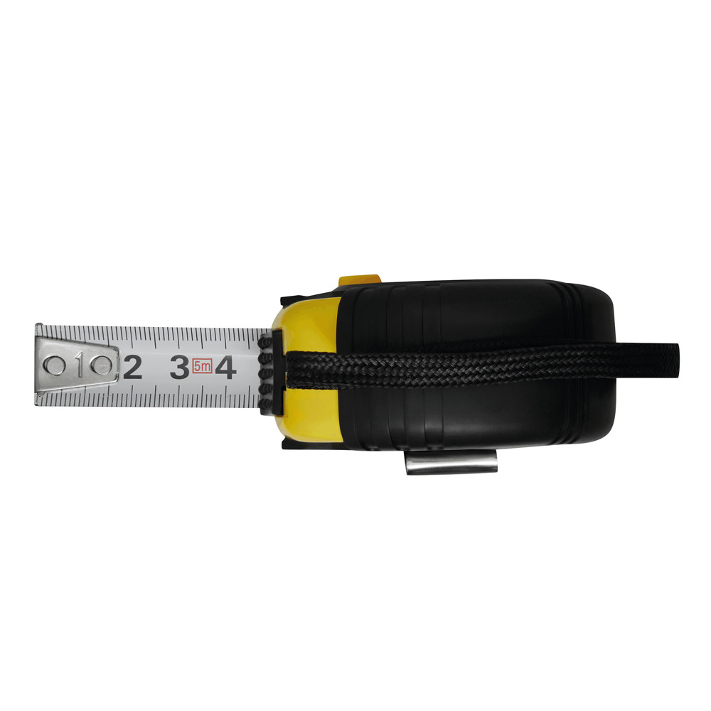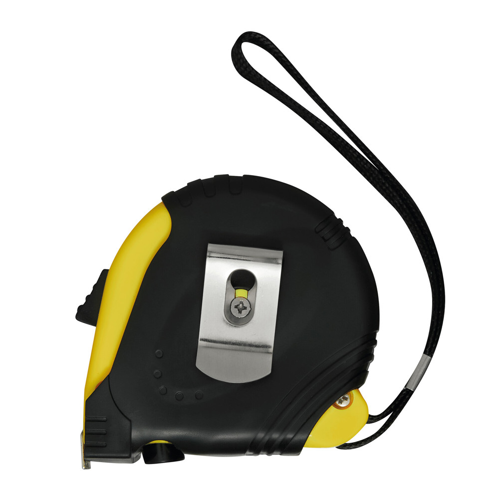Measuring tape EMPLOYEE with clip and carrying loop in rubber body with an automatic stopper, 5 m