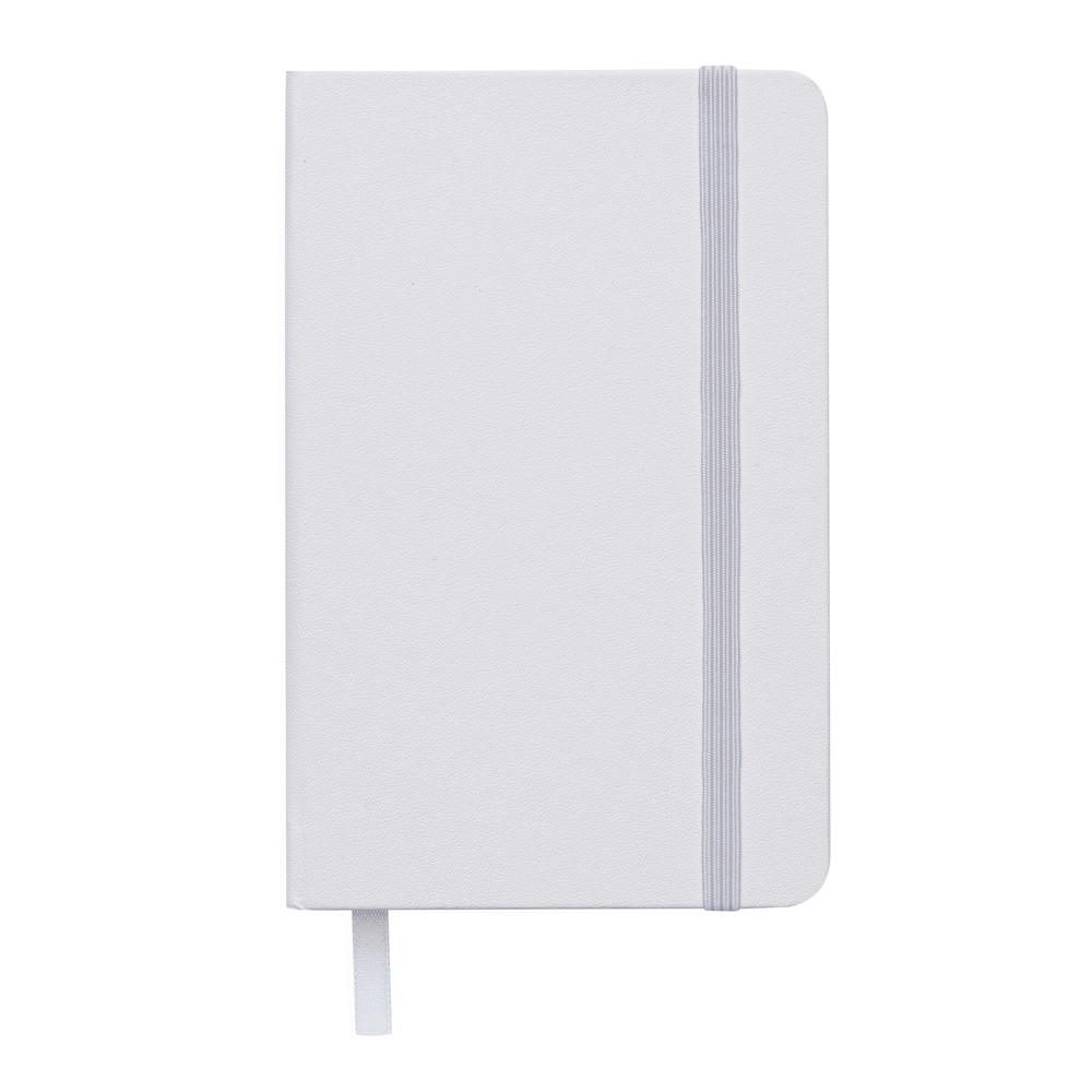 Notebook ATTENDANT in DIN A6 format with rounded off corners, rubber band to close and integrated bookmark, 80 pages, ruled, 80g/m²