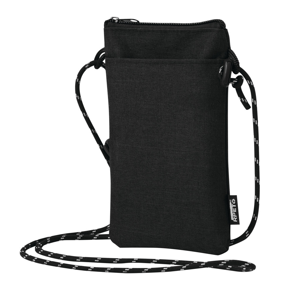 Phone crossbody bag URBAN: universal pouch suitable for smartphones, main compartment with zipper, 1 slip-in pocket on the front, made of recycled polyester (rPET), with adjustable shoulder strap (length approx. 140 cm)