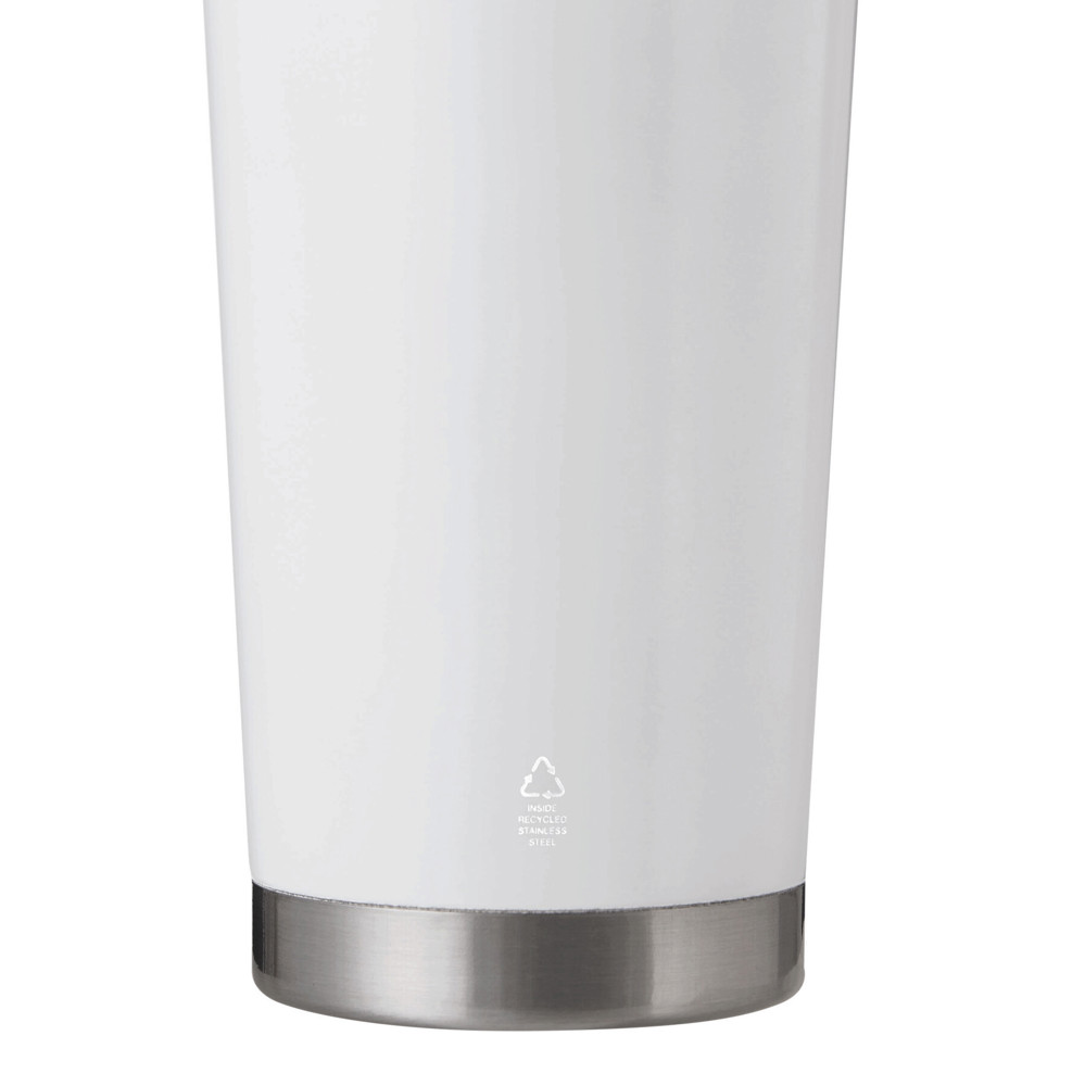 Vacuum insulated travel mug MUG2GO, double-walled: inside made of recycled stainless steel and outside made of stainless steel, secure plastic screw cap in matching colour with double function, built-in drinking opening plus flip-opened straw, silicone sealing ring, and rPET carrying loop, capacity approx. 500 ml, keeps warm for approx. 8 hours and cold for up to 12 hours, packed in a gift box