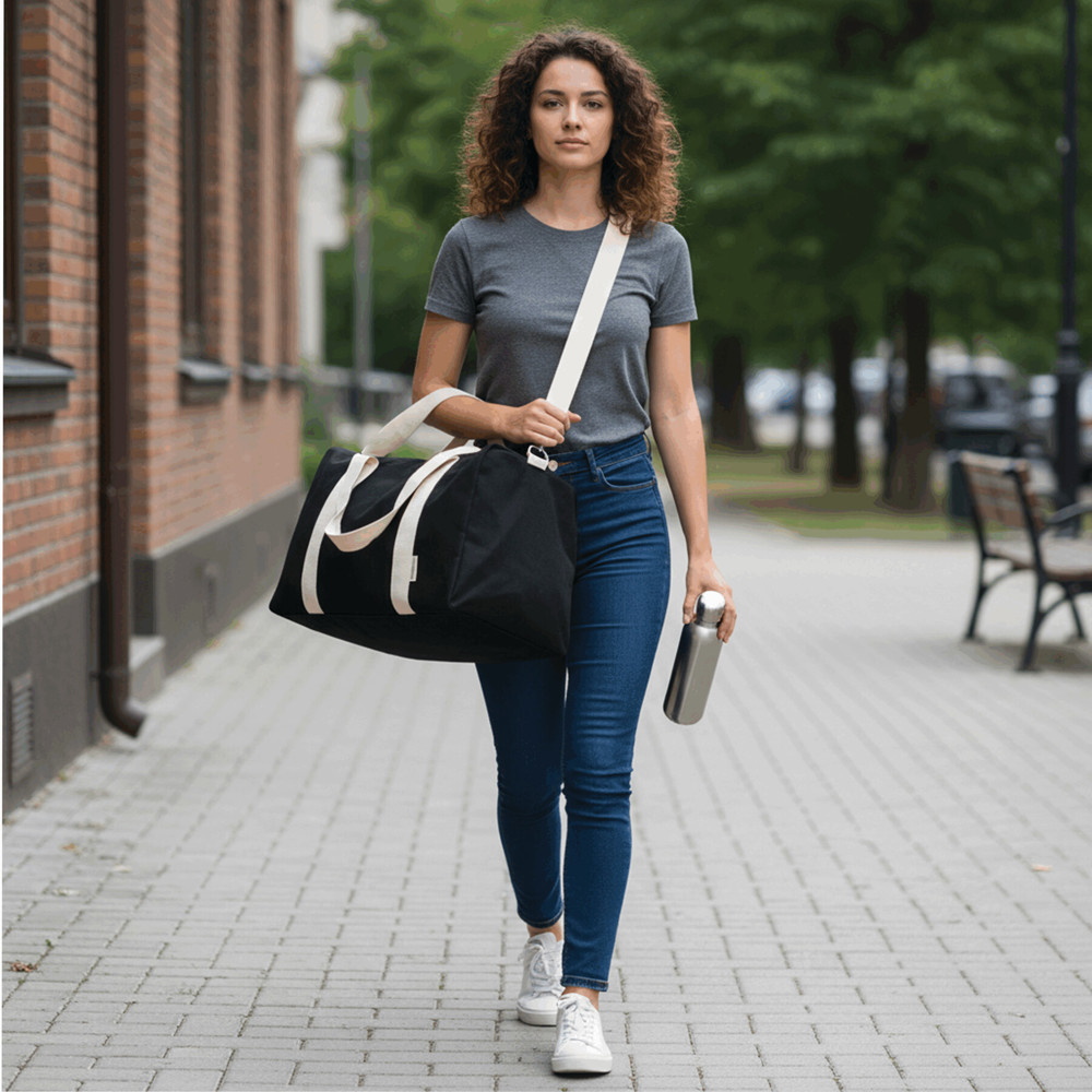 Sports bag BANKURA: made of recycled cotton and polyester, spacious zipped main compartment, 2 carrying handles, adjustable and detachable shoulder strap