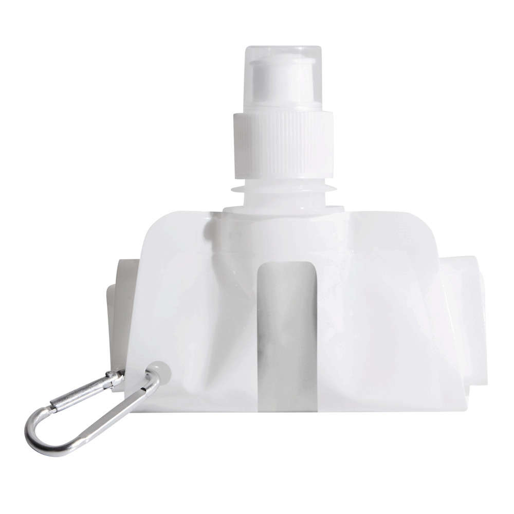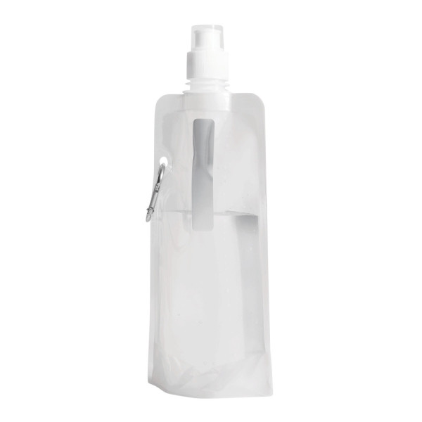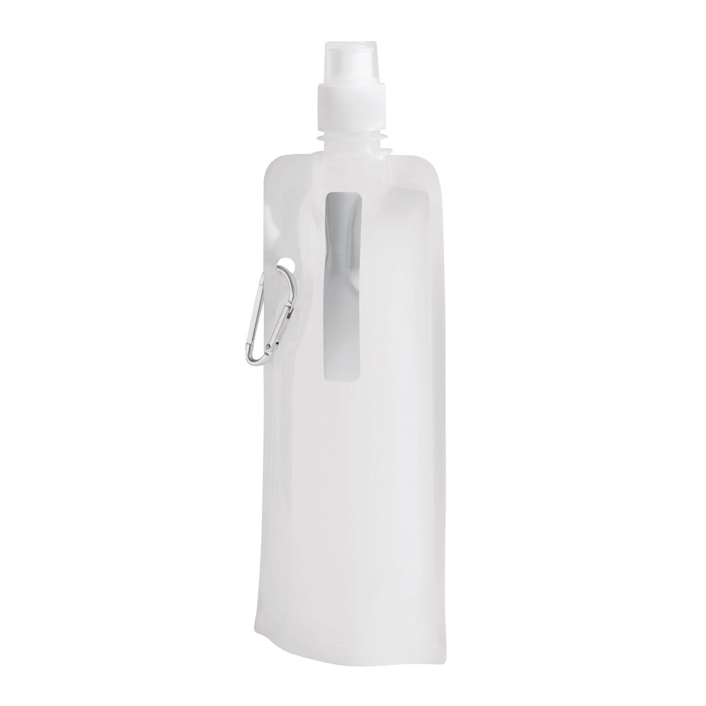 Water bag AQUAFOLD: foldable, can be rolled up when empty, transparent push-pull cap, with carabiner (the carabiner is NOT suitable for climbing), capacity approx. 400 ml
