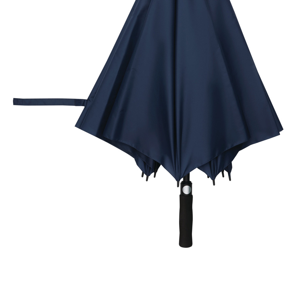 Automatic golf umbrella ORA: with fibreglass shaft, fibreglass ribs, plastic tips, EVA handle with integrated press button, polyester pongee canopy made from recycled plastic / rPET, closing strap with Velcro