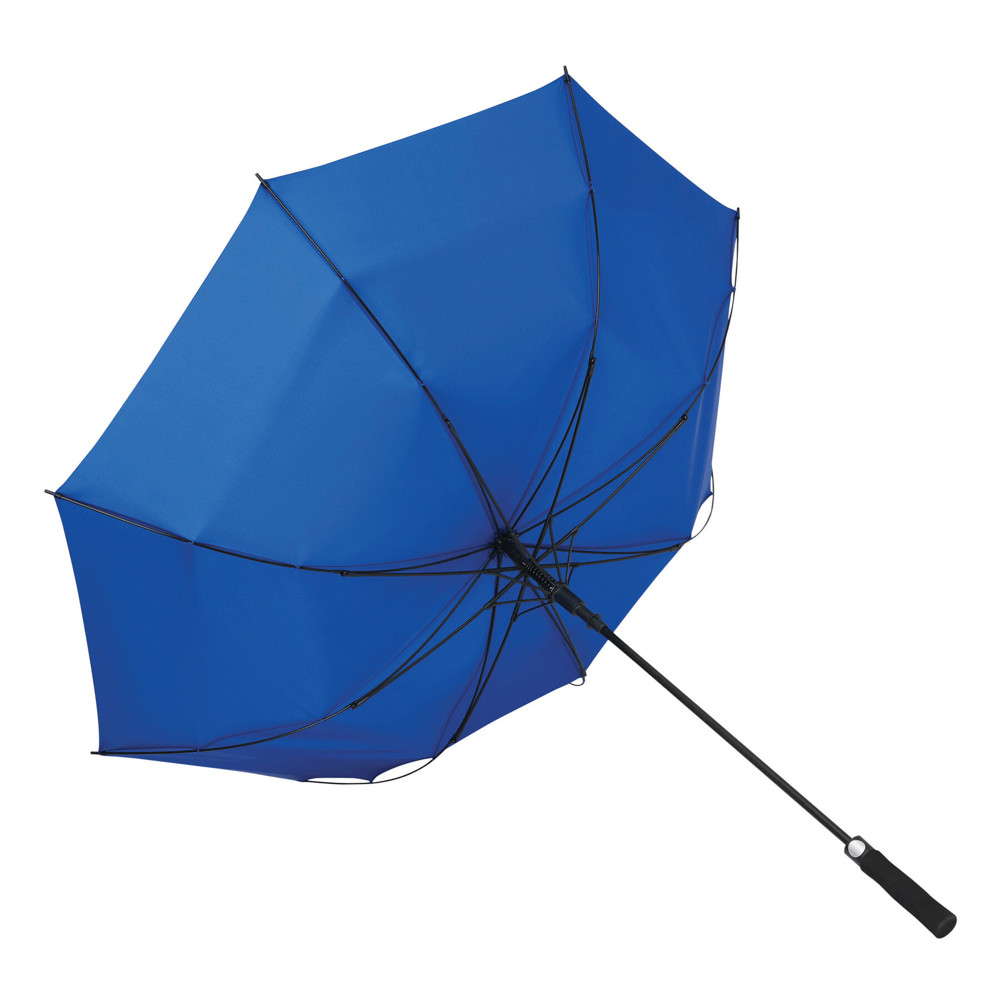 Automatic golf umbrella ORA: with fibreglass shaft, fibreglass ribs, plastic tips, EVA handle with integrated press button, polyester pongee canopy made from recycled plastic / rPET, closing strap with Velcro