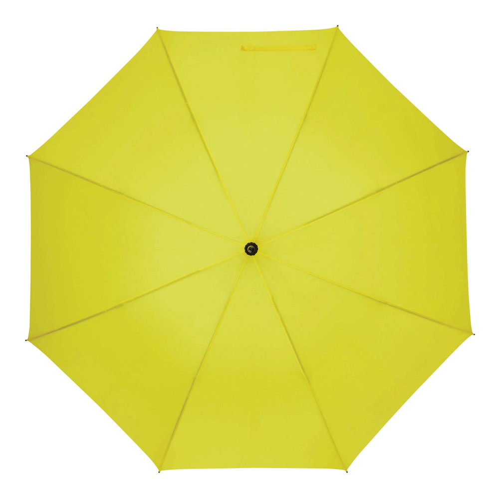 Automatic golf umbrella ORA: with fibreglass shaft, fibreglass ribs, plastic tips, EVA handle with integrated press button, polyester pongee canopy made from recycled plastic / rPET, closing strap with Velcro