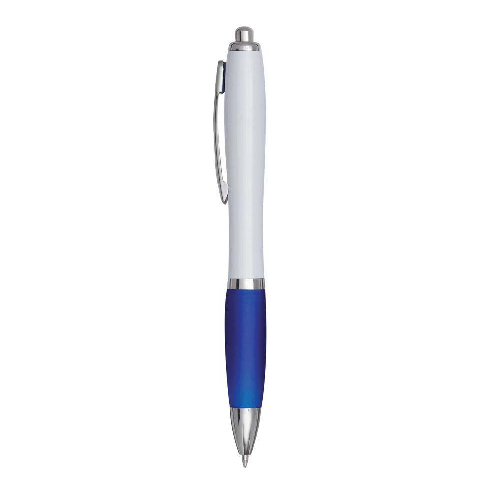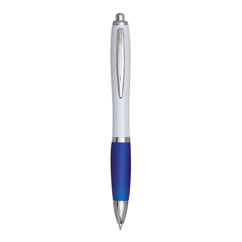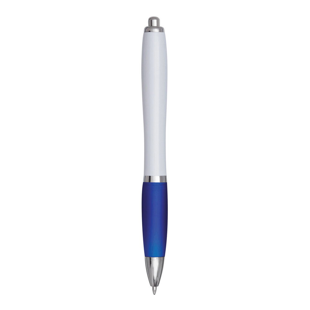 Ballpoint pen SWAYRABS: with curvy barrel made of recycled plastic, rubberised grip, push mechanism, jumbo refill, blue ink