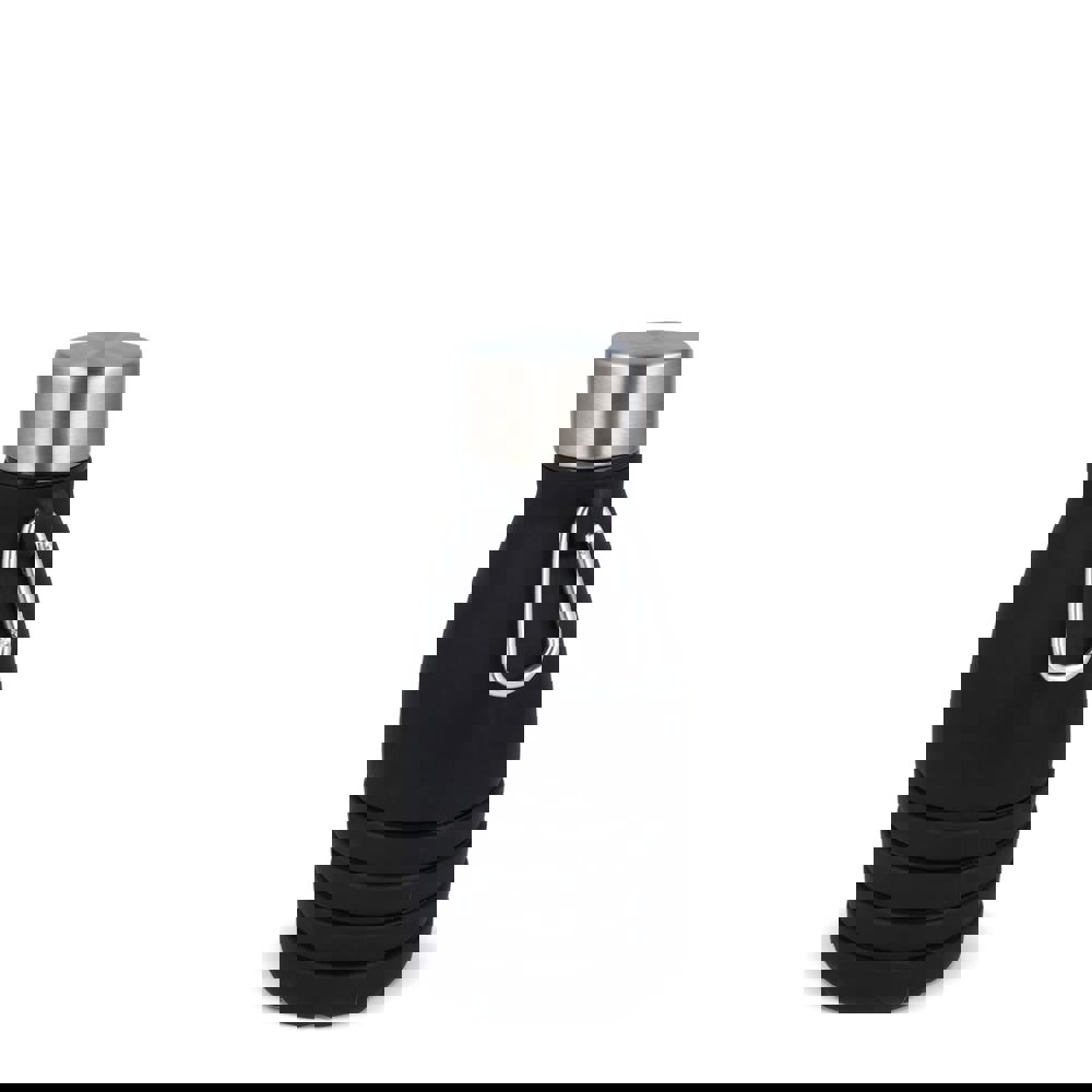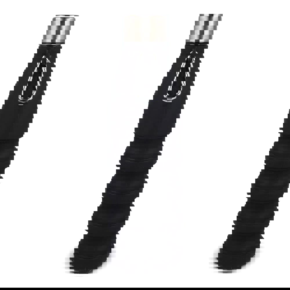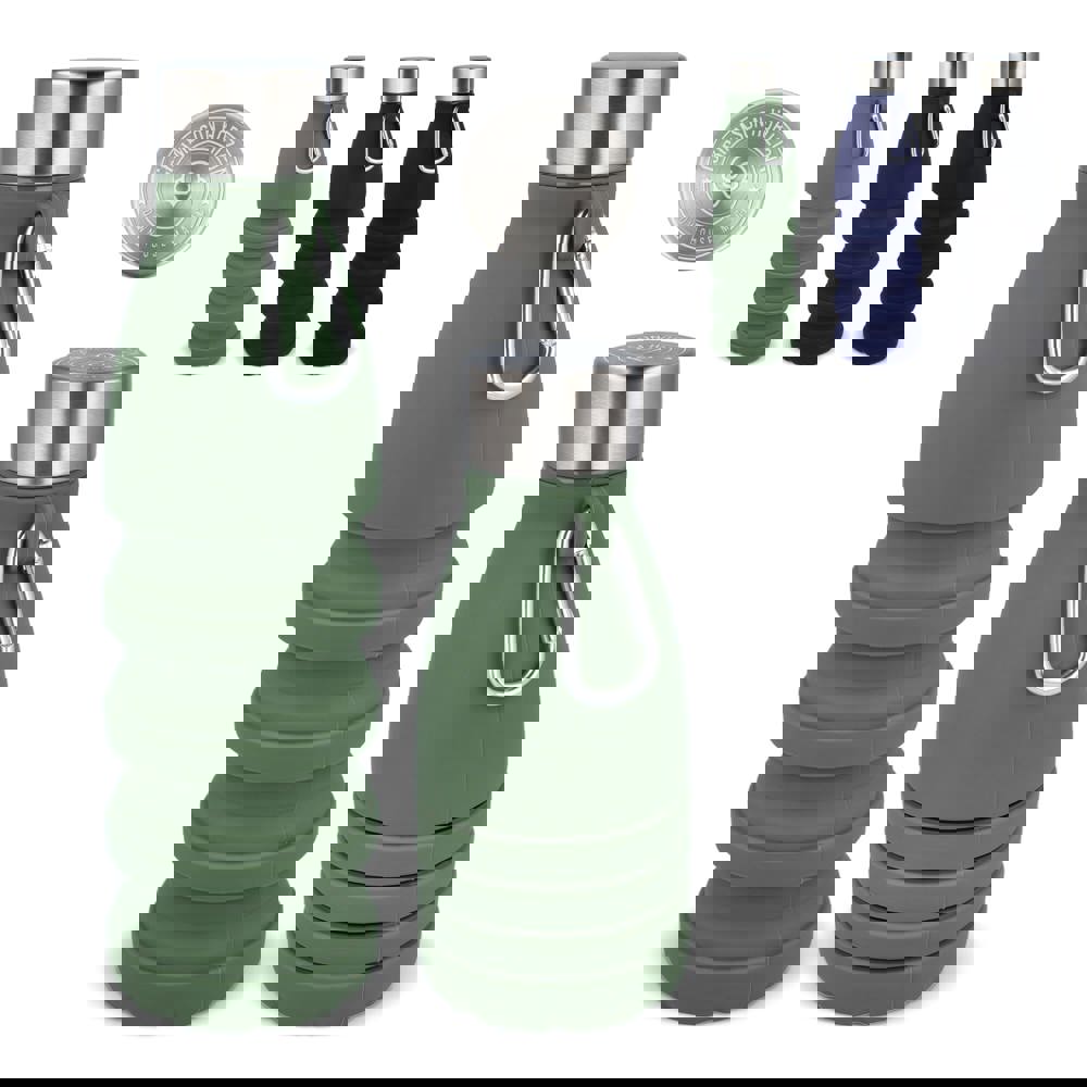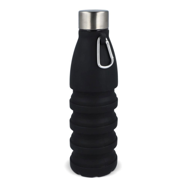 Silicon collapsable water bottle with a carabiner to attach to your bag. It can contain 550ml of liquids.