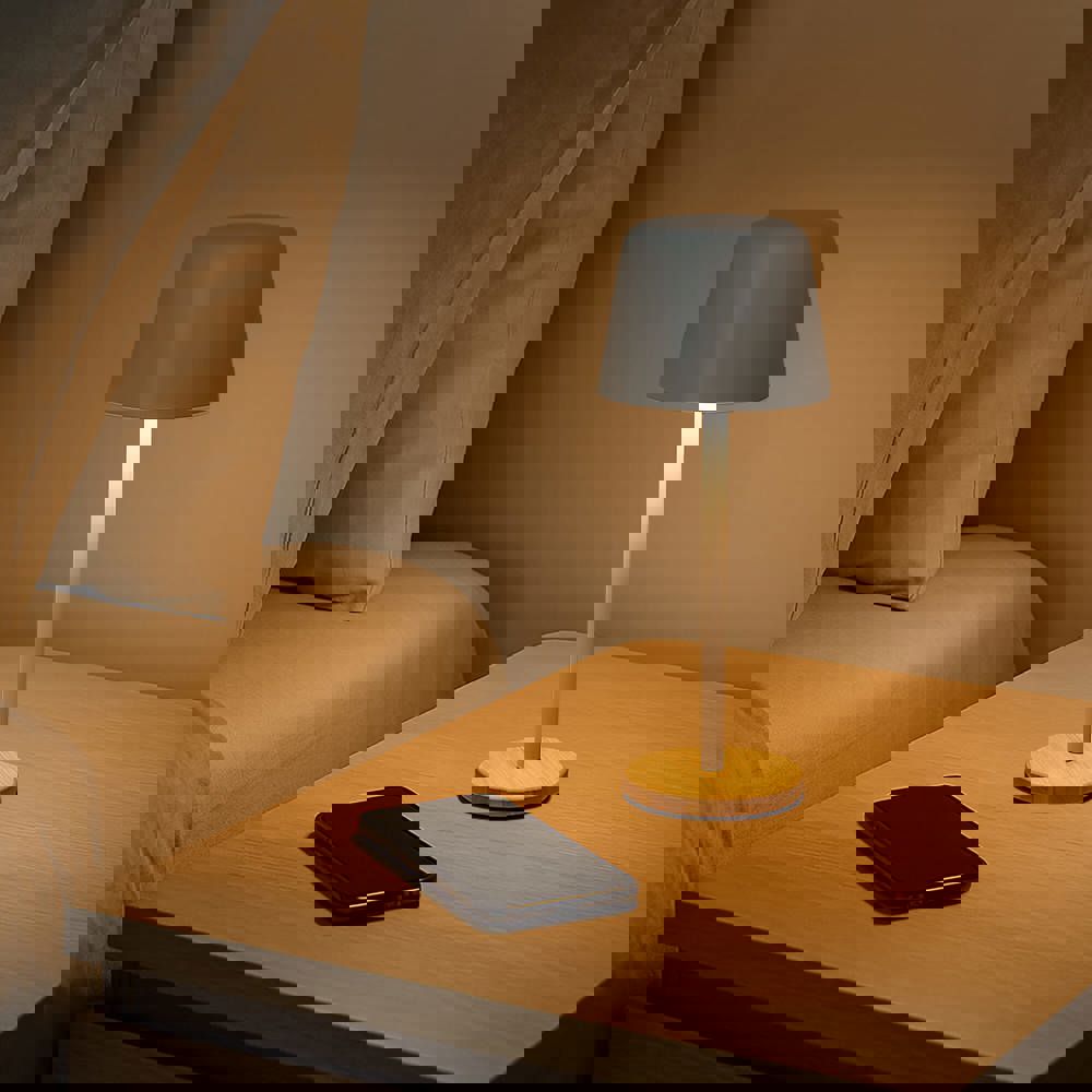 The Solis table lamp is fully dimmable and offers three versatile light modes: cool light, warm light and natural light. With a built-in 1,200 mAh battery, you'll enjoy 6 hours of lighting. Charging is easy and quick via the included USB-C cable, after which the lamp is fully ready for use again in just 3 hours.