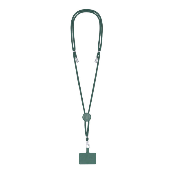 Lanyard with smartphone accessory. Made of durable polyester. Carrying accessory to place between the case and the smartphone and metal rotating carabiner. Collar adjusters, with chrome details at the ends of the drawstrings.