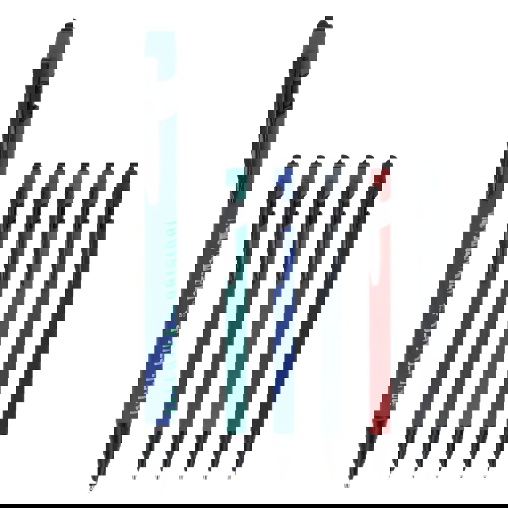 Ballpen Paris made of recycled aluminium and softtouch finish. The ballpen has a stylus function and black accents. with blue writing ink.