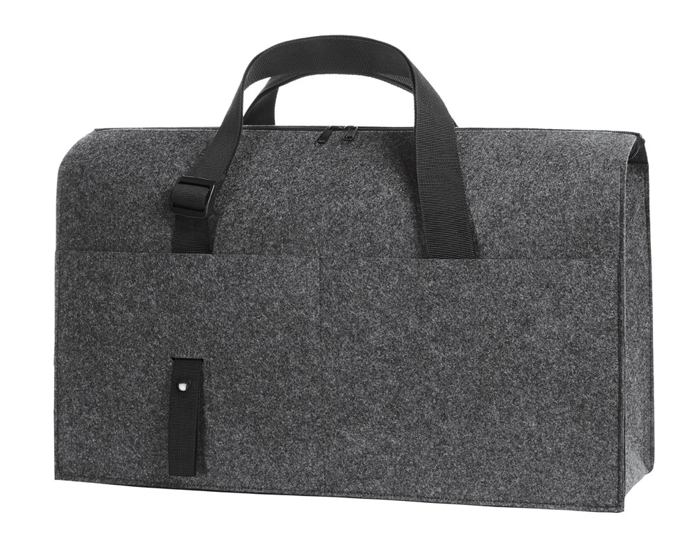 Extensively equipped organiser; large 2-way zipped main compartment; flat slip-in compartment, large zipped slip-in compartment, two fixing loops e.g. for water bottle, business card pocket, three slip-in compartments inside; three slip-in compartments outside; length-adjustable shoulder straps; fastening tab e.g. for car seat belts
