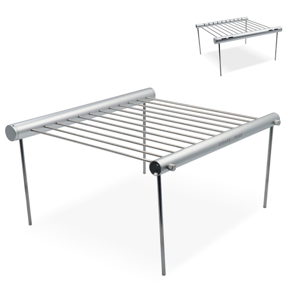 Light weight portable barbecue in a tube, easy to stow away in a backpack during a multi-day hike or just for a picnic in the park. All parts fit inside the large tube and the barbecue can be set-up without any tools. Comes packaged in a giftbox. Assembling instructions included.
