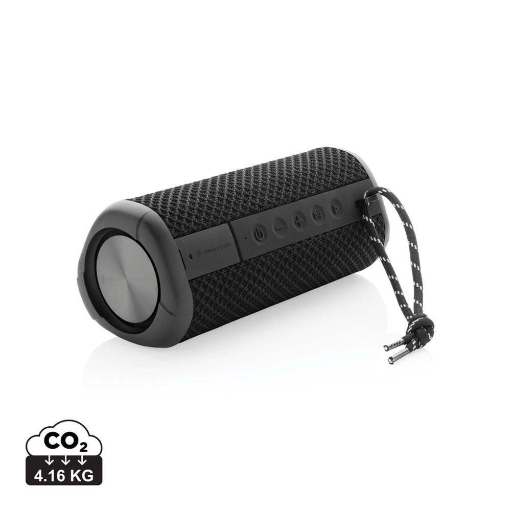 Bring your speaker wherever you go. Hanging out at the beach? Perfect! Party at the pool? Covered! Sudden rain? No worries! Your speaker is IPX7 waterproof up to 1 metre deep and max 30 minutes! After a sandy day at the beach simply rinse it off under the shower. The 10W speaker has a massive bass supported by two subwoofers on both ends of the speaker. The powerful sound is enough to keep a good sized party going until sun rise. The durable fabric and strong housing will make sure the speaker can even handle a little bump. Enjoy up to 15 hours of play time! If you receive a call, just answer it with the integrated mic in clear quality. Urban Vitamin items are made without PVC and packed in plastic reduced packaging