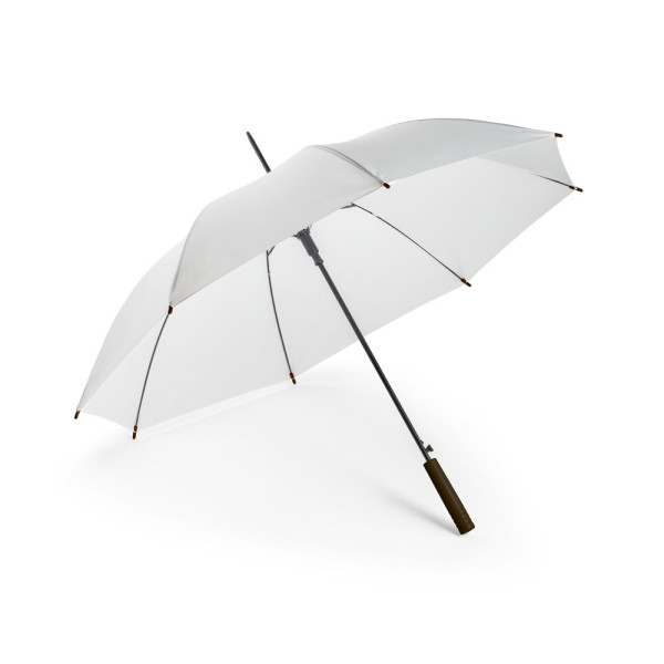 Recycled polyester (100% rPET) pongee umbrella with automatic opening, metal frame and shaft and wooden handle. ø1050 x 850 mm