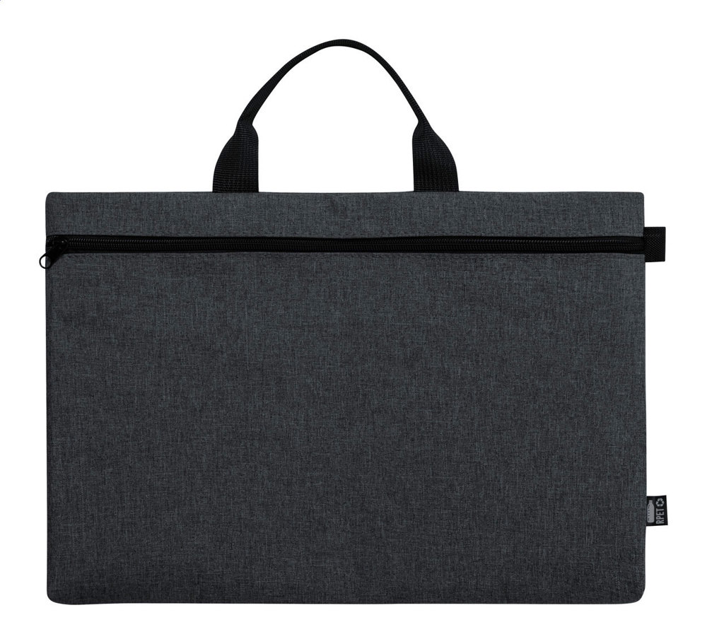 RPET document bag with zipped compartment and distinctive RPET label. 600D RPET polyester.