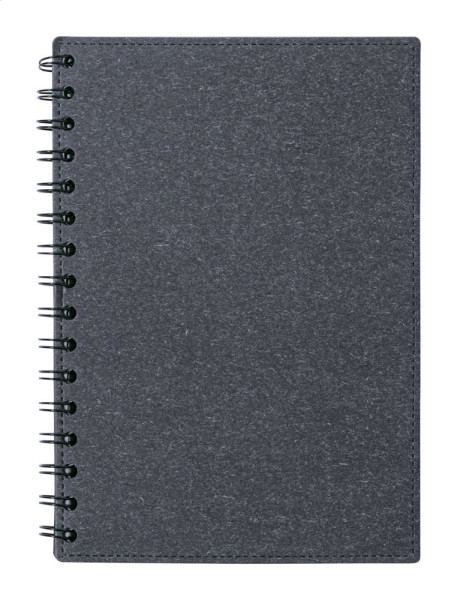 Recycled paper, spiral notebook with hard cover and 80 lined sheets, A5 size.