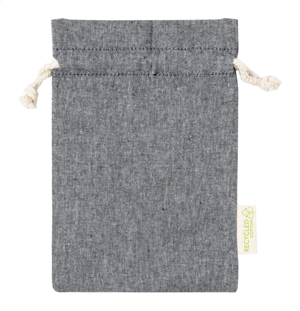 Reusable recycled cotton produce bag with drawstring closure. 100% recycled cotton, 120 g/m².
