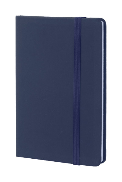 PU leather covered notebook with 100 blank sheets, bookmark and rubber strap. A6 size.