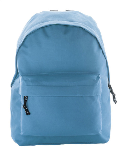 Backpack with zipped front pocket, padded back and shoulder straps. 600D polyester.