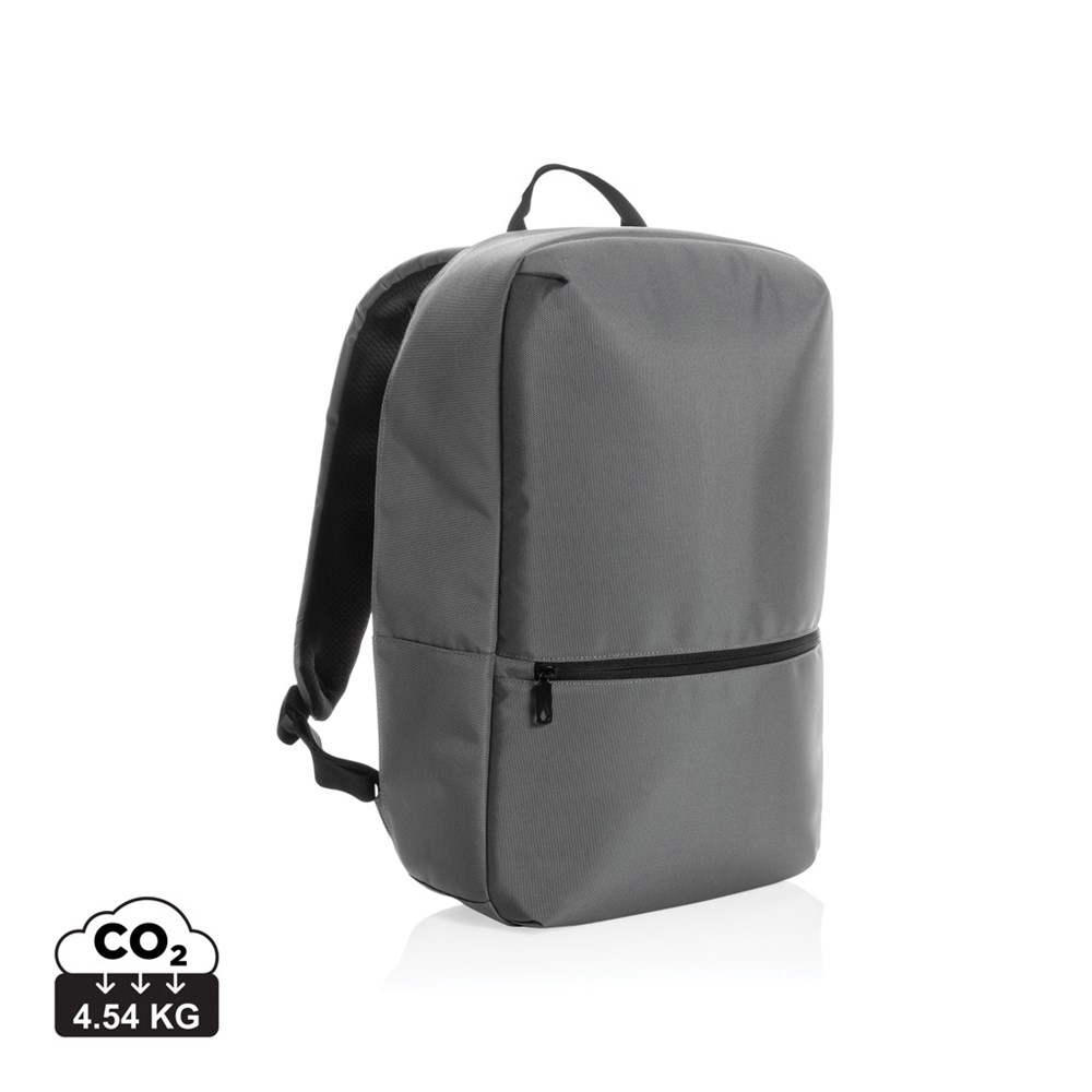 This Impact AWARE™ 1200D 15.6" laptop backpack is the ideal backpack for students and commuters alike. Clean lines but yet a super practical daypack. An inner pocket with a laptop compartment stows laptops securely and safely. The bag has a padded back for extra comfort during your commute. Two RFID pockets. The exterior and interior is made with 100% recycled polyester. With AWARE™ tracer that validates the genuine use of recycled materials. Each bag has reused 32.9 0.5L PET bottles. 2% of proceeds of each Impact product sold will be donated to Water.org. PVC free.