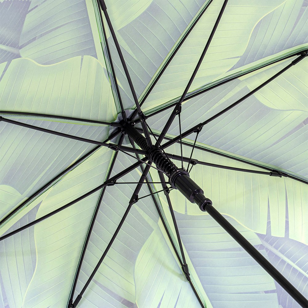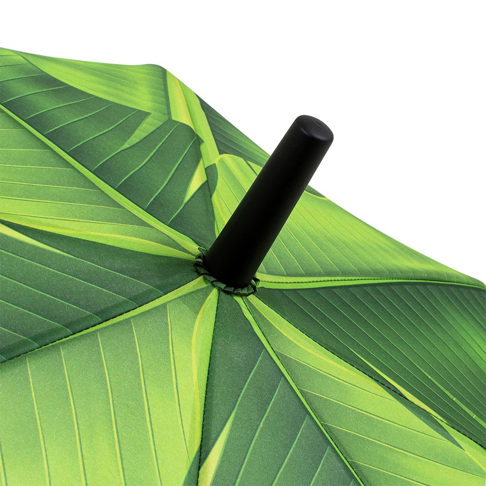 Fancy automatic regular umbrella with printed outer cover and contoured hem Convenient automatic function for quick opening, high-quality Windproof PLUS system for maximum frame flexibility in stormy conditions, flexible fibreglass ribs, sturdy steel shaft, exterior allover printed cover with black contour hem, Soft-Feel crook handle with promotional labelling option, higher corrosion protection due to galvanized steel shaft