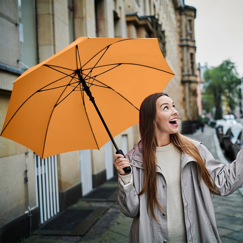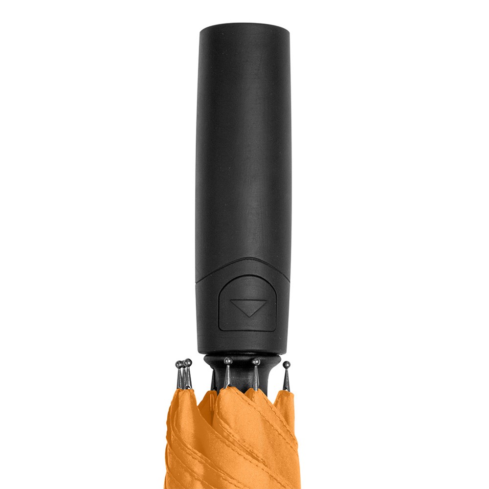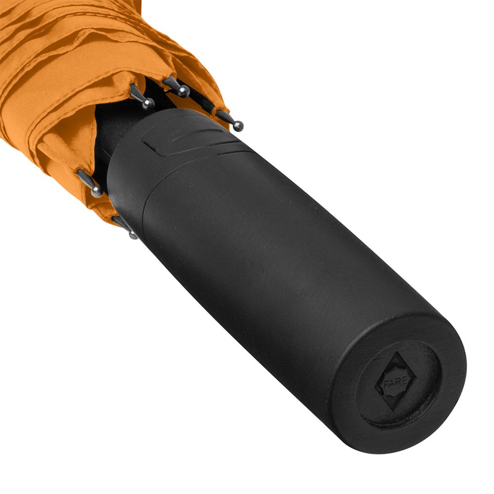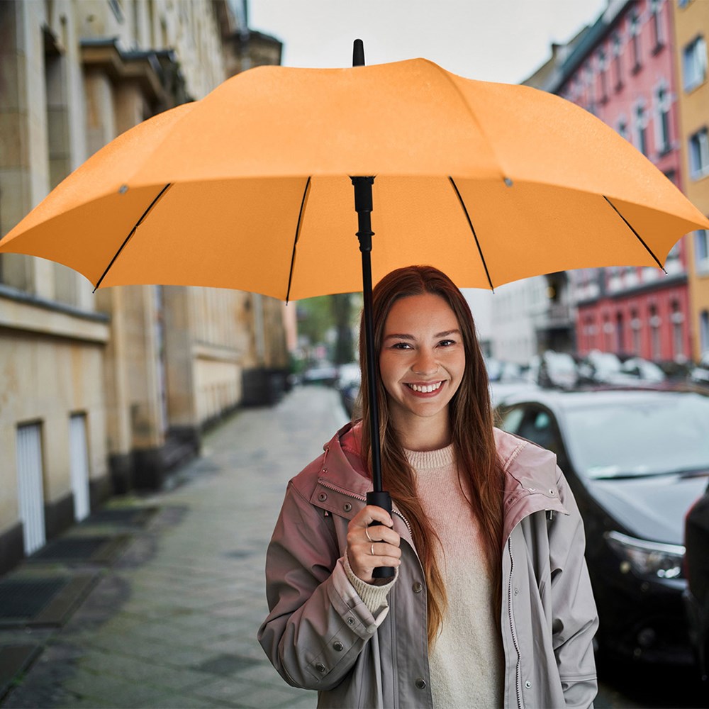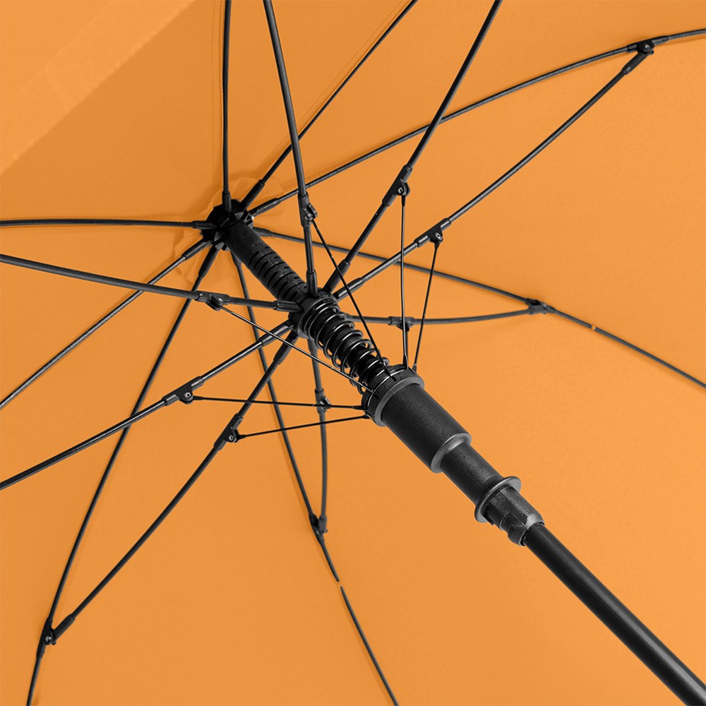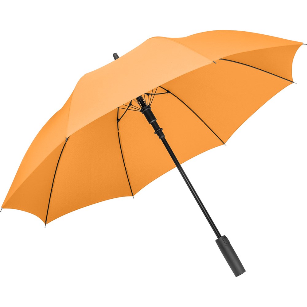 Attractively priced automatic regular umbrella with Windproof PLUS system Convenient automatic function for quick opening, high-quality Windproof PLUS system for maximum frame flexibility in stormy conditions, flexible fibreglass ribs, higher corrosion protection thanks to black galvanisation of the steel shaft, Soft-Feel handle with integrated pushbutton and promotional labelling option.