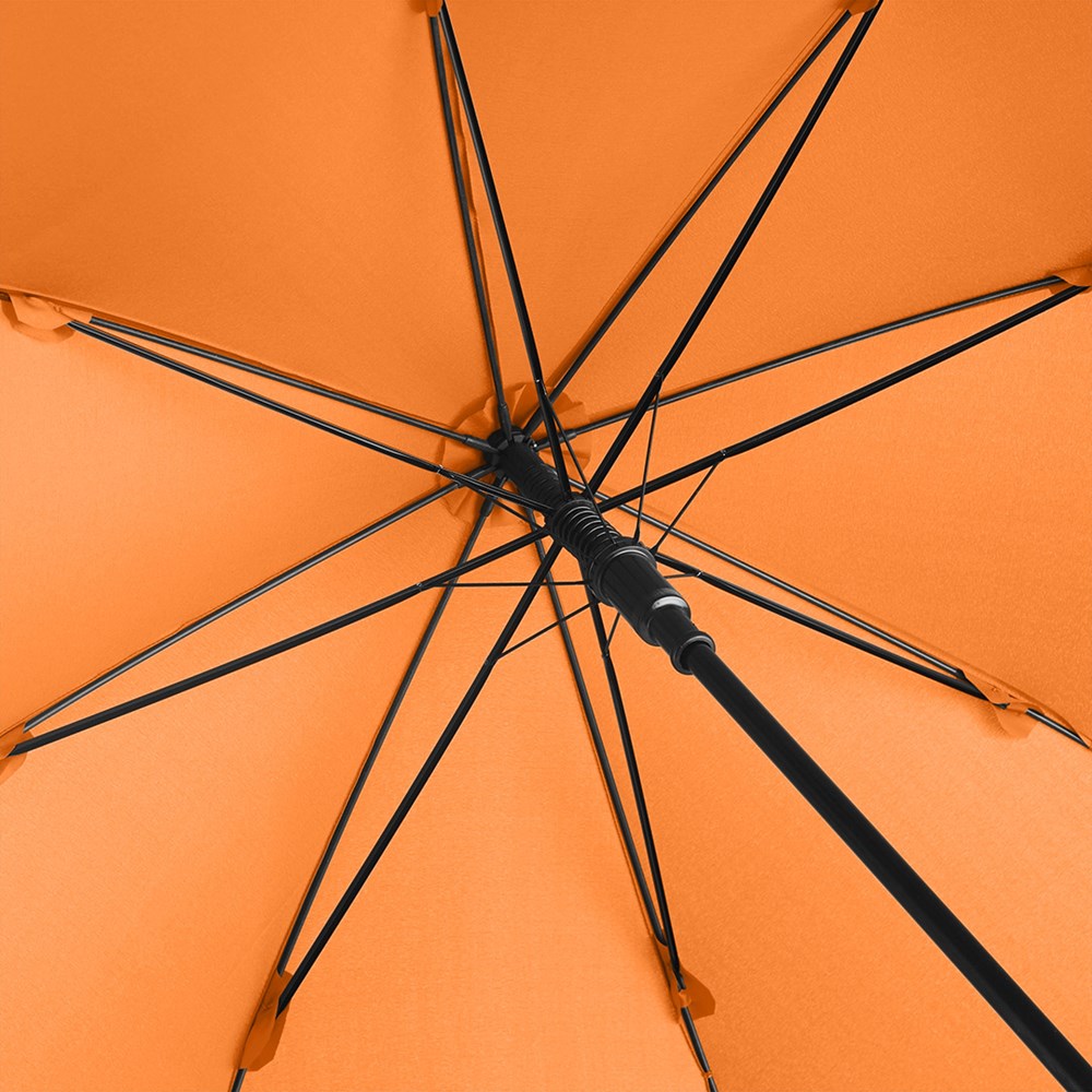 Attractively priced automatic golf umbrella for two people with Windproof system Convenient automatic function for quick opening, Windproof system for higher flexibility and stability in windy conditions, flexible fibreglass ribs, dull black plastic crook handle, higher corrosion protection due to galvanized steel shaft. Also available as regular umbrella (art. 1104).