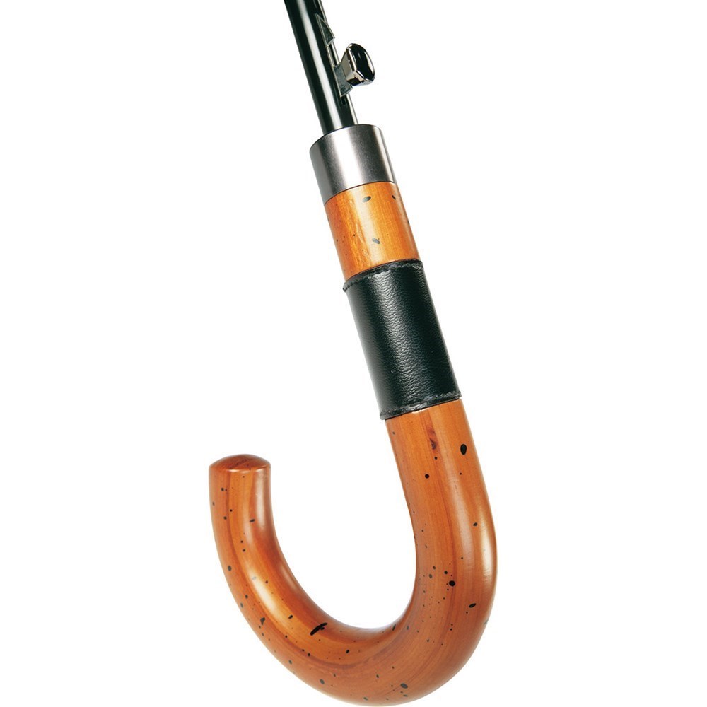 Automatic regular umbrella in medium size with classy leather detailing Convenient automatic function for quick opening, high-quality Windproof PLUS system for maximum frame flexibility in stormy conditions, flexible fibreglass ribs, water and dirt repellent cover properties through original Teflon™ fabric protector, wooden crook handle with gain and handle ring, black handle patch in leather look, higher corrosion protection due to galvanized steel shaft