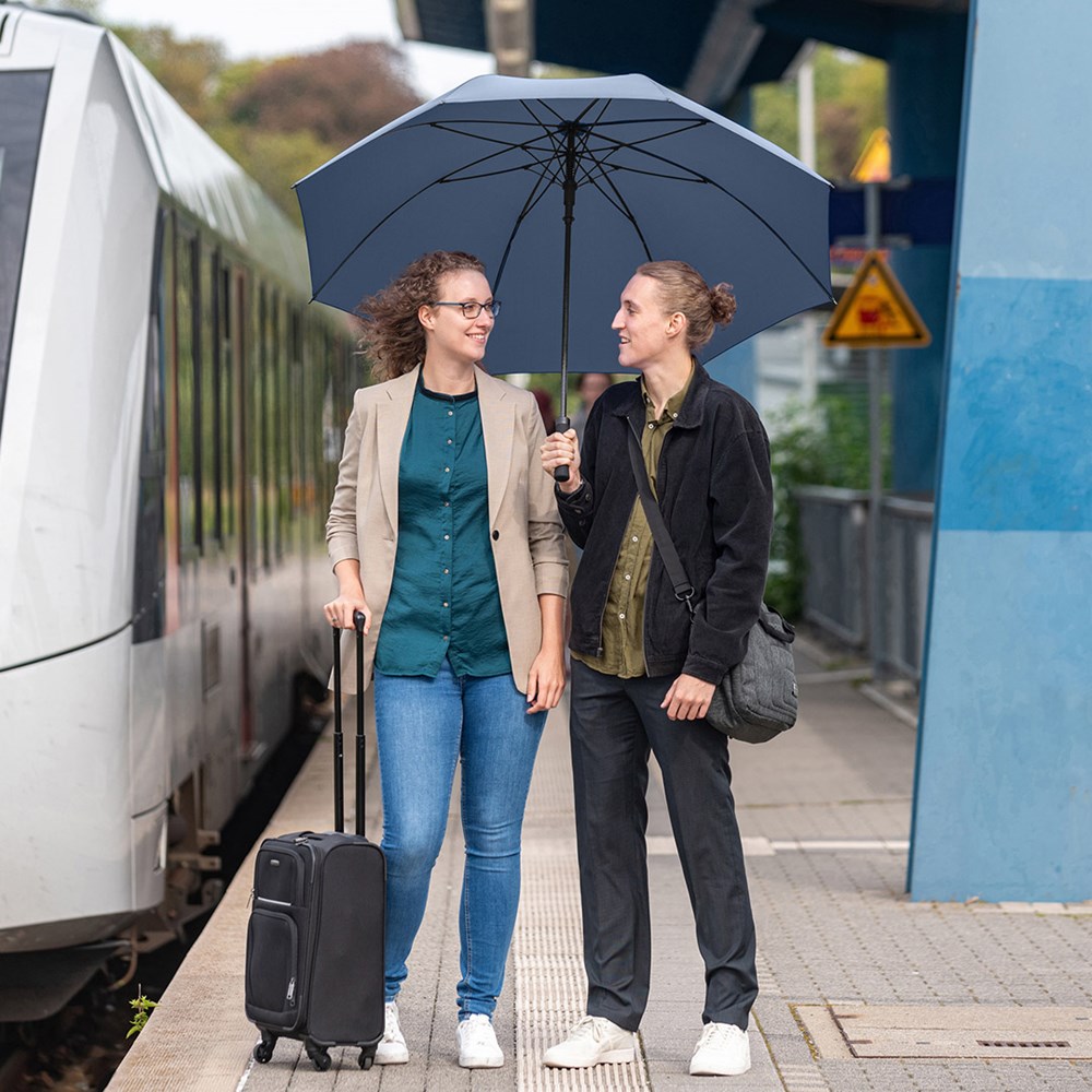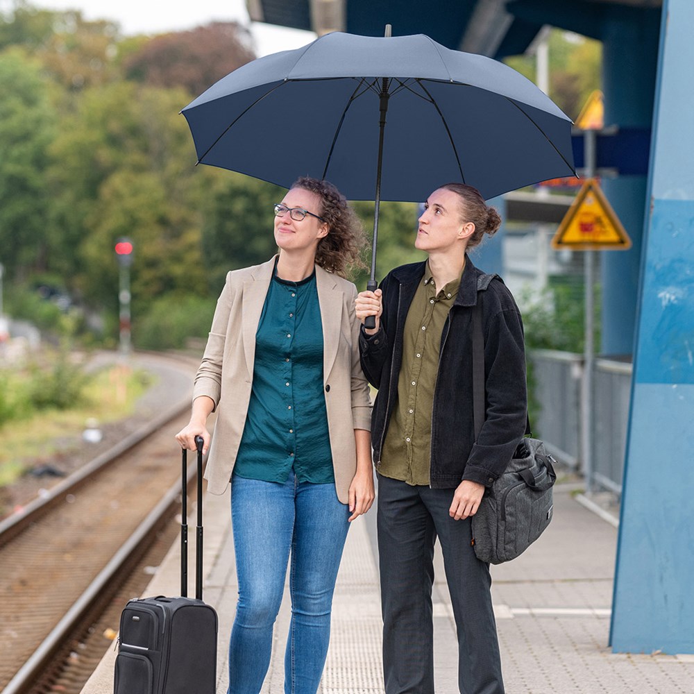 Highly durable automatic golf umbrella with large diameter for two people Convenient automatic function for quick opening, high-quality Windproof PLUS system for maximum frame flexibility in stormy conditions, sturdy fibreglass shaft, flexible fibreglass ribs, straight soft handle with flat push button, large, accommodating diameter