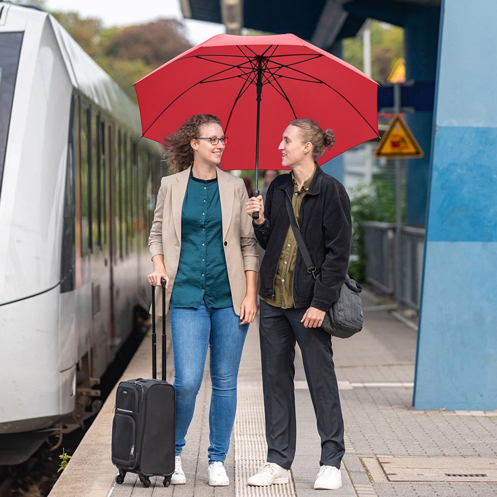 Highly durable automatic golf umbrella with large diameter for two people Convenient automatic function for quick opening, high-quality Windproof PLUS system for maximum frame flexibility in stormy conditions, sturdy fibreglass shaft, flexible fibreglass ribs, straight soft handle with flat push button, large, accommodating diameter