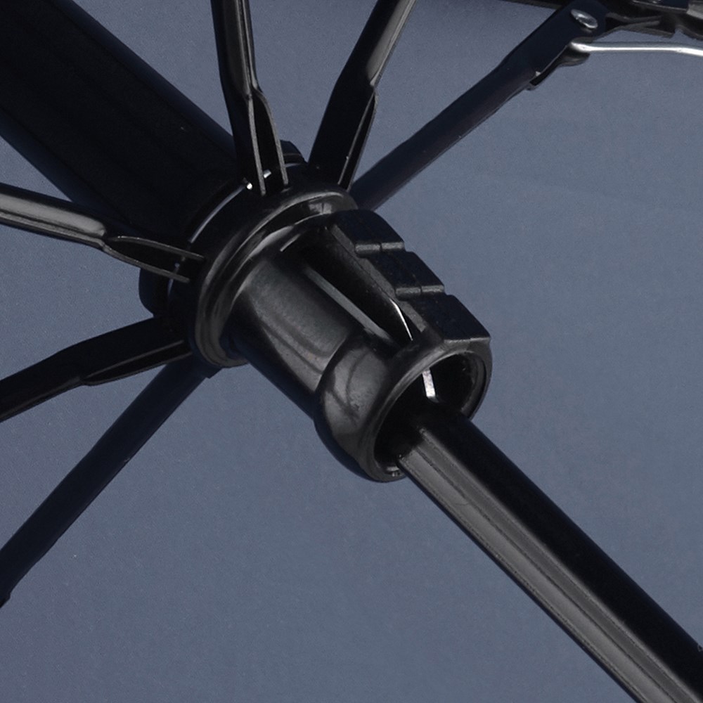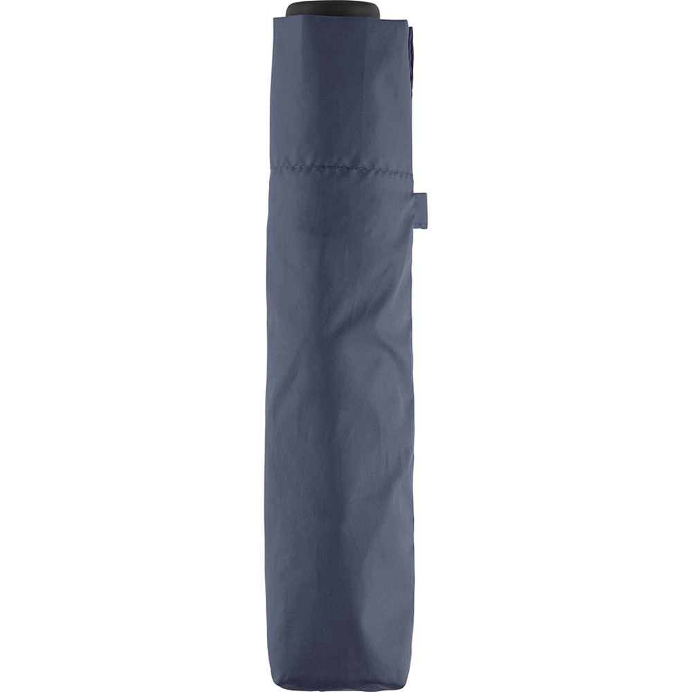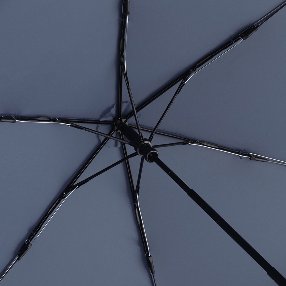 Filigree manual opening mini pocket umbrella with ultra-lightweight construction Easy to handle thanks to sliding safety runner, high-quality Windproof PLUS system for maximum frame flexibility in stormy conditions, black aluminium shaft, polyester pongee cover material made of recycled plastics, extra lightweight cover, dull black plastic handle made from recycled ABS (rABS) with promotional labelling option, suitable for handbag through ultra-light weight and compact size