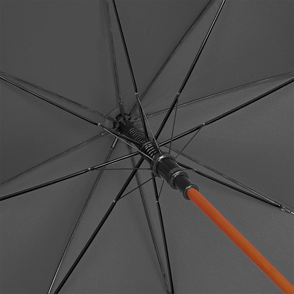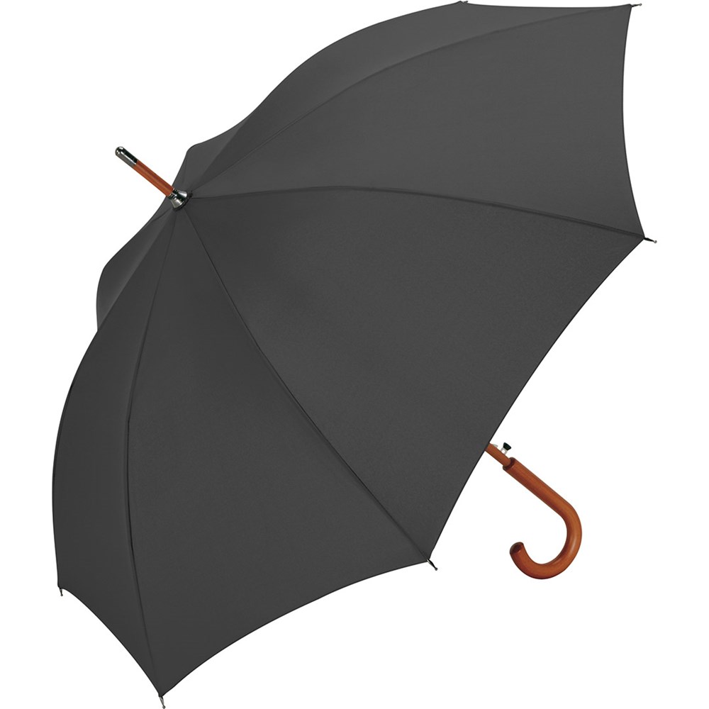 Automatic regular umbrella with genuine wood shaft and genuine wood handle Convenient automatic function for quick opening, Windproof system for higher flexibility and stability in windy conditions, flexible fibreglass ribs, massive genuine wood shaft, crook handle and top made of genuine wood