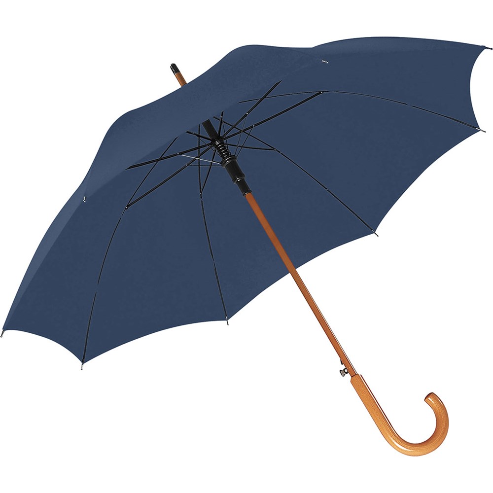 Automatic regular umbrella with genuine wood shaft and genuine wood handle Convenient automatic function for quick opening, Windproof system for higher flexibility and stability in windy conditions, flexible fibreglass ribs, massive genuine wood shaft, crook handle and top made of genuine wood